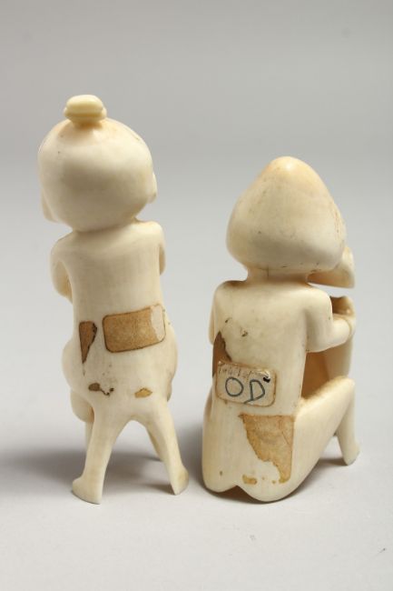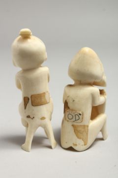 TWO INUIT WHALEBONE CARVINGS 3.5ins.