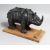 A BRONZED RHINOCEROS on a wooden base, 13ins long
