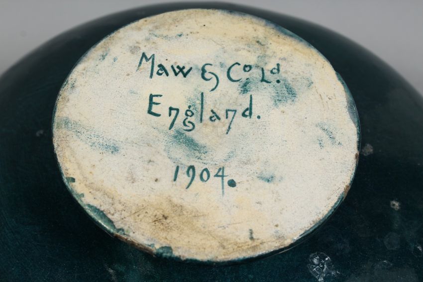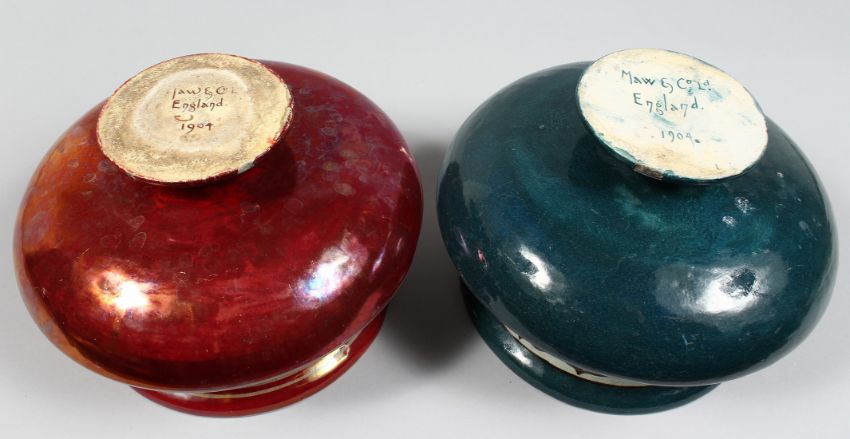 MAWS & CO. LTD., A LUSTRE DECORATED CIRCULAR SHALLOW PEDESTAL BOWL, decorated with a band of stylised flowers, together with a similar bowl, both marked to the base, Maws & Co. Ltd, England, 1904 (2).