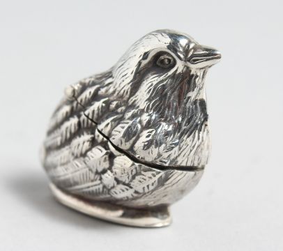A CAST SILVER CHICK VESTA.
