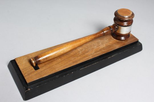 AN RAMC OFFICERS MESS GAVEL ON STAND.