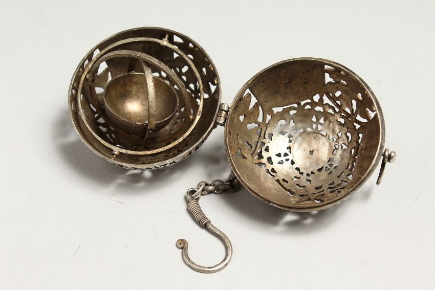 A PIERCED BALL CENSER, 5cm.