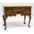 AN 18TH CENTURY WALNUT LOWBOY with a cross banded and feather banded quarter veneered top, three drawers above a shaped apron on cabriole legs with pad feet.