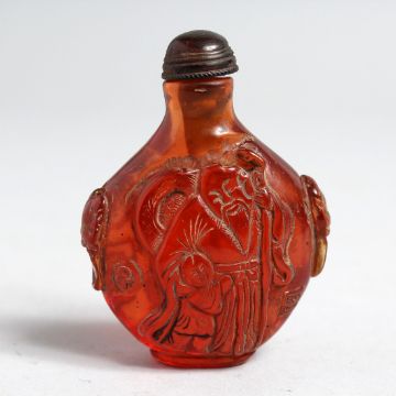 A CHINESE AMBER STYLE SNUFF BOTTLE, 3ins high.