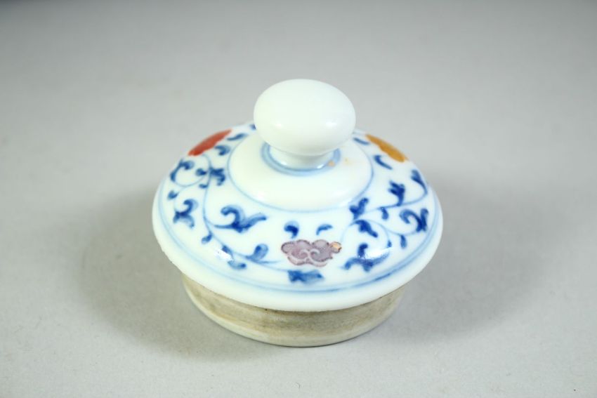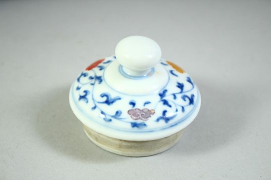 A CHINESE POLYCHROME TEA JAR AND COVER, decorated with dragons and clouds, 11.5cm high.