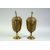 A PAIR OF INDIAN ENGRAVED AND CHASED BRASS LIDDED PEDESTAL CUPS, with twin handles, the lids with a finial in the form of a four armed deity, each 26.5cm high.