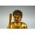 A GILT BRONZE MODEL OF A SEATED DEITY, sitting with legs crossed holding a sword in one hand and beads in the other, 15cm high.