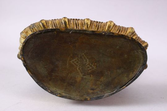 A THAI GILT BRONZE SEATED FEMALE DIETY, 20cm high.