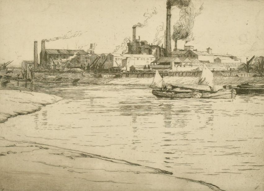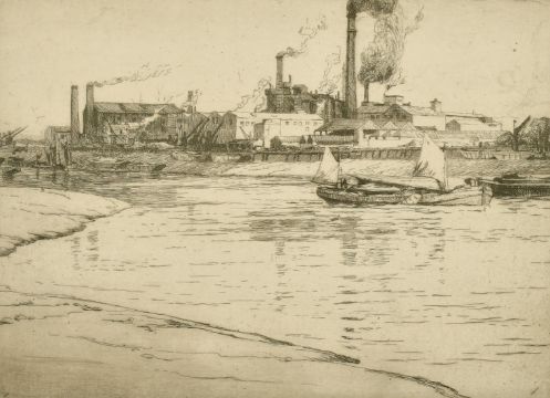 Leslie Moffat Ward (1888-1978) British, 'Low Tide, Hammersmith', etching, signed and inscribed in pencil, 8" x 10.75", mounted.