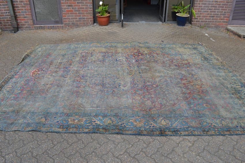 A large early Persian carpet (very badly worn), approx. 13ft x 9ft 10ins.