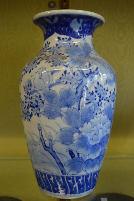 A large Japanese blue and white vase.