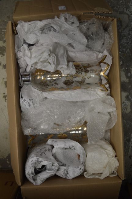 A quantity of gilt decorated glass lampshades.