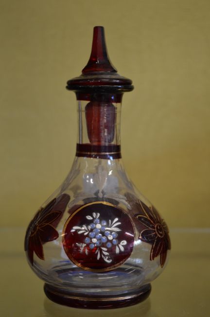 A small enamel decorated glass scent bottle.