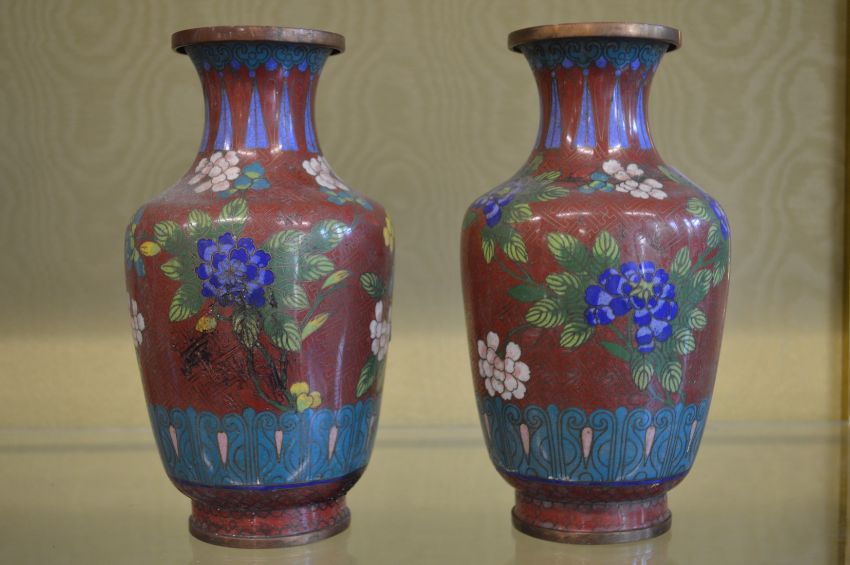 A pair of cloisonne vases.