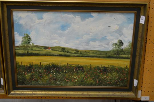 Raymond Price "A View Near Appledore, Kent" oil on board.
