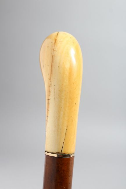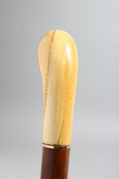 A WALKING STICK WITH CARVED IVORY HANDLE.