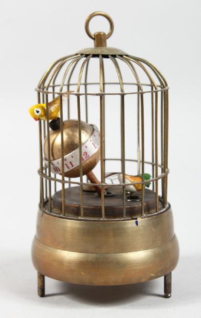 A SMALL BIRD CAGE CLOCK.