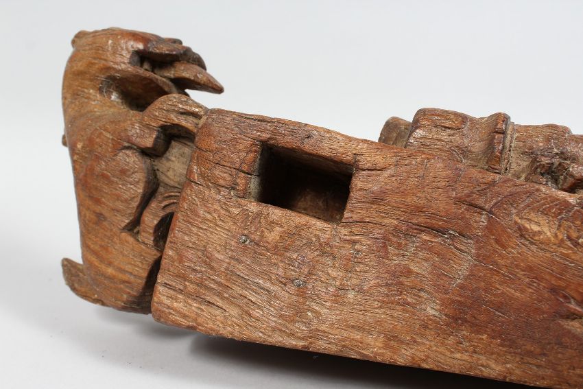A SOUTH EAST ASIAN BEAST CARVING. 26ins long.