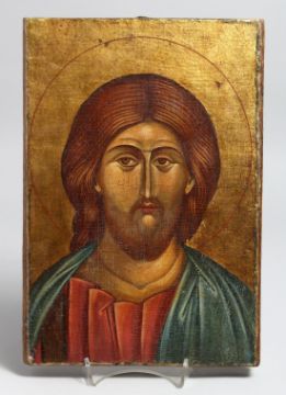 A PAINTED RUSSIAN ICON ON WOOD