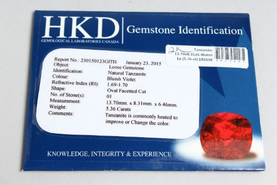 A LOOSE TANTZANITE STONE, 5.36ct.