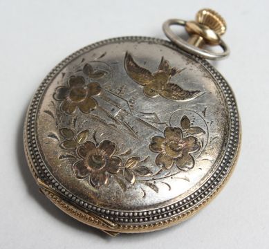 AN ENGRAVED SWISS ELGIN POCKET WATCH.