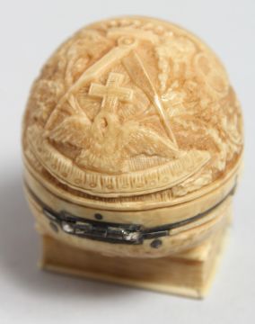 A CARVED BONE SKULL VERGE TABLE CLOCK, the movement by Massot, Geneva, 2.25ins.