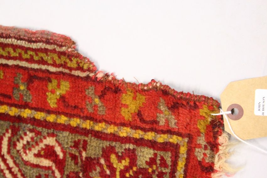 AN EARLY 20TH CENTURY ANATOLIAN PRAYER RUG, red ground with geometric design.