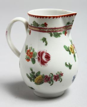 AN 18TH CENTURY BRISTOL JUG painted with chains of flowers, scattered flowers and a carmine and gilt band.