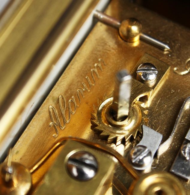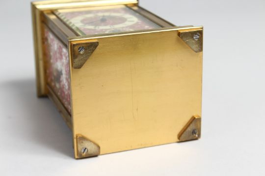 A SUPERB 19TH CENTURY FRENCH BRASS REPEATER CARRIAGE CLOCK. Retailed by M Hayes & Co. with porcelain panel painted with birds.