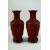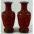 A PAIR OF CHINESE CINNABAR LACQUER VASES on hardwood stands, with relief panels of figures in a garden, the interior and base enamelled in blue, 28.5cm high (on stand).