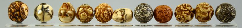 A GOOD COLLECTION OF ELEVEN MIXED CARVED IVORY OJIME BEADS, (11).