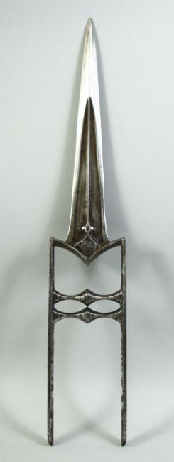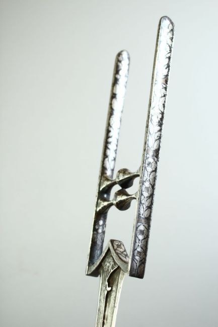 A FINE AND LARGE 18TH CENTURY INDIAN SILVER AND GOLD OVERLAID STEEL KATAR DAGGER, 46.5cm long.