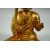 A GILT BRONZE MODEL OF A SEATED DEITY, sitting with legs crossed holding a sword in one hand and beads in the other, 15cm high.