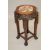 A CHINESE RED MARBLE INSET CARVED HARDWOOD STAND, the curved legs on claw feet and united by a stretcher, 69cm high.