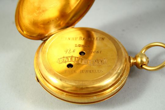 A TURKISH OTTOMAN FULL HUNTER POCKET WATCH, with enamelled emblem to the cover, the face with roman and turkish numerals, 5.5cm diameter.