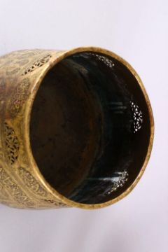 A 19TH / 20TH CENTURY SYRIAN BRASS CALLIGRAPHIC OPENWORK BOWL, decorated with round motif flora and shaped bands of calligraphy, 22cm