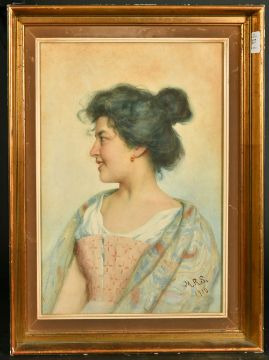 Early 20th Century, Portrait of a young Italian girl, watercolour, initialed M.R.S. and dated 1910, 16.25" x 11.25".