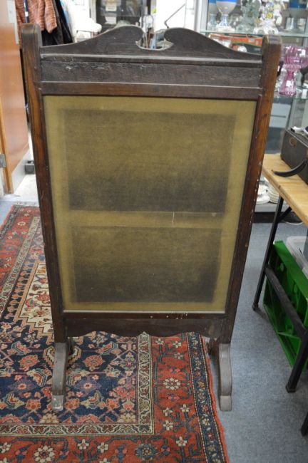 A Victorian oak framed needlework fire screen.