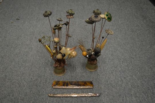 A collection of hat pins etc.