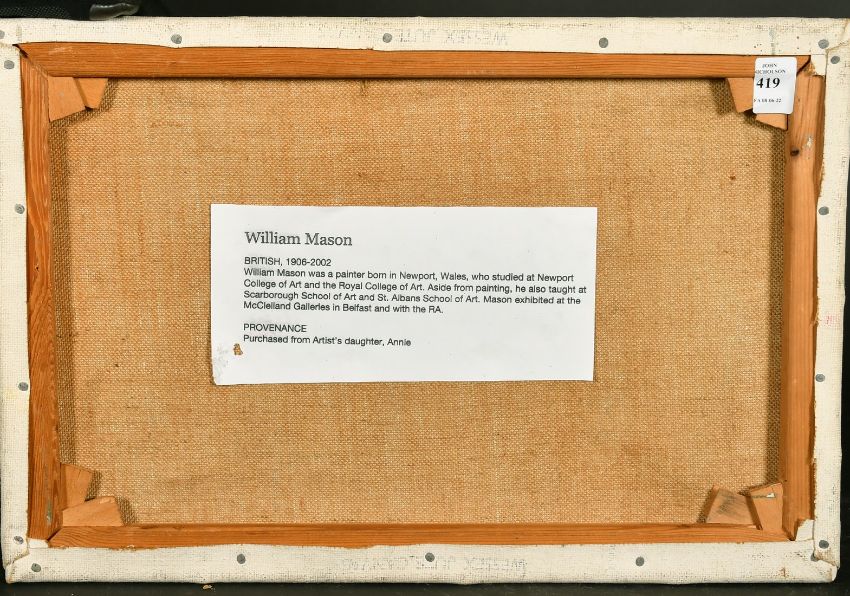 WILLIAM MASON (1906-2002). Figures walking in a park, oil on canvas.