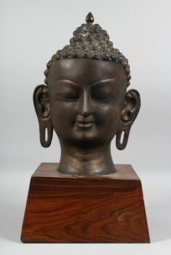 A LARGE BRONZE BUDDHA HEAD on stand.