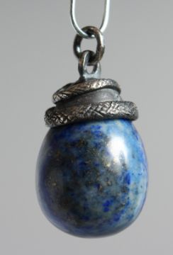 A RUSSIAN SILVER AND ENAMEL EGG PENDANT with snake.