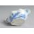 AN EARLY BOW SAUCE BOAT with flat unglazed base and unusual handle painted in underglaze blue, with two Chinoiserie scenes and an internal diaper border.