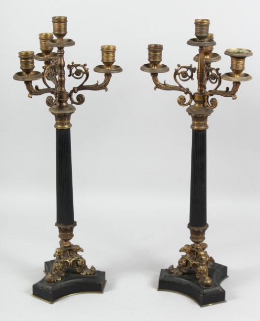 A GOOD PAIR OF FOUR LIGHT CANDLESTICKS on eagle bases.