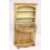 A VERY GOOD REGENCY SATIN BIRCH CABINET, the top with sliding glass door enclosing two shelves on a base, with bow front and single drawer, column support and serpentine stretcher.