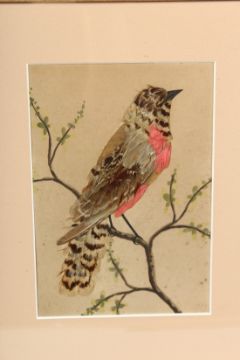 A PAIR OF FRAMED AND GLAZED MEXICAN FEATHER PICTURES OF BIRDS.