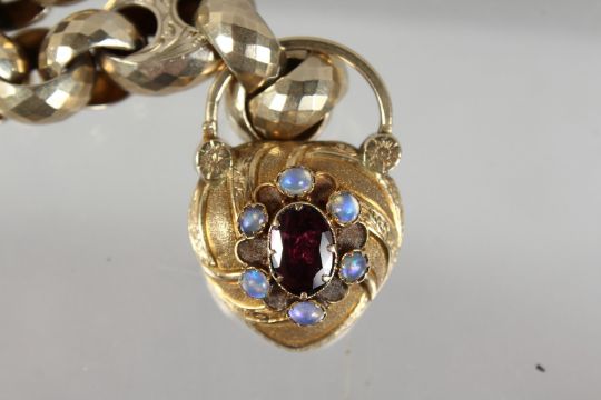 A VICTORIAN HEART SHAPED LOCK AND CHAIN.