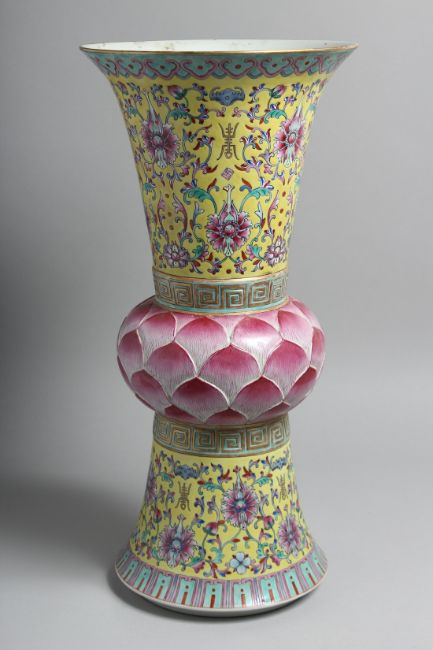 A GOOD CHINESE YELLOW GROUND AND PINK VASE.