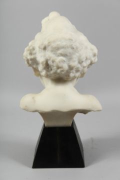 A GOOD ITALIAN CARVED WHITE MARBLE BUST OF A CHILD.