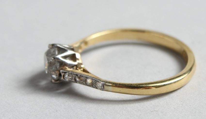 A GOOD 18CT GOLD OLD CUT SINGLE STONE RING.